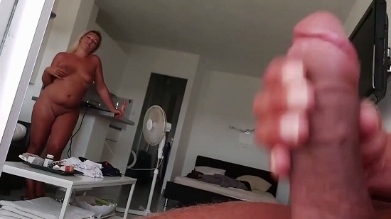 Fat horny woman with a cock in her ass